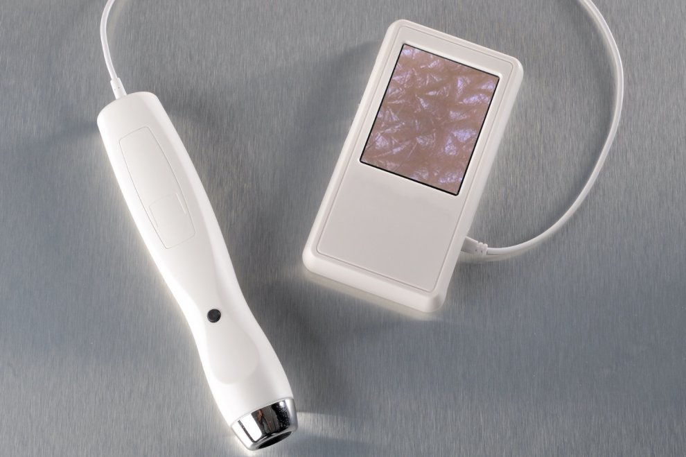 Priročen ročni zaslon prikazuje osupljive slike kože in las, zajete s kamero. S kratkim pritiskom gumba kamere preklopite med virom vzporedno polarizirane svetlobe, ki prikaže strukturo kože, in virom navzkrižno polarizirane svetlobe, ki prikaže globlje plasti kože (pigmentacijo, žilice ipd.). Z daljšim pritiskom gumba zamrznete sliko na ročnem zaslonu. Pogovorite se o vidnih podrobnostih s stranko: porah, lisah, nečistočah, laseh, prhljaju, črtah in gubah ipd.